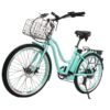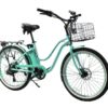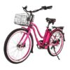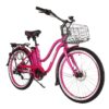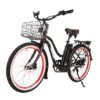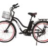 This awesome electric beach cruiser bicycle comes standard with a folding basket that can be hung on either the front handle bars or on either side of the rear rack. There is no extra fee for the basket!